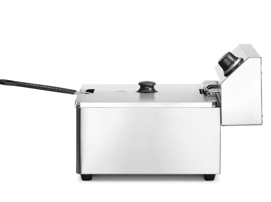 Een frituurmand met een extra lange handgreep maakt dit model tot een prettig apparaat voor intensief gebruik.