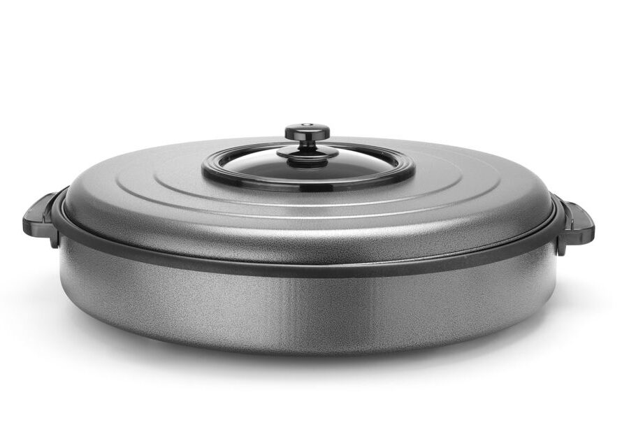 Deze pan is geschikt voor bakken en braden , maar ook voor warmhouden van producten.