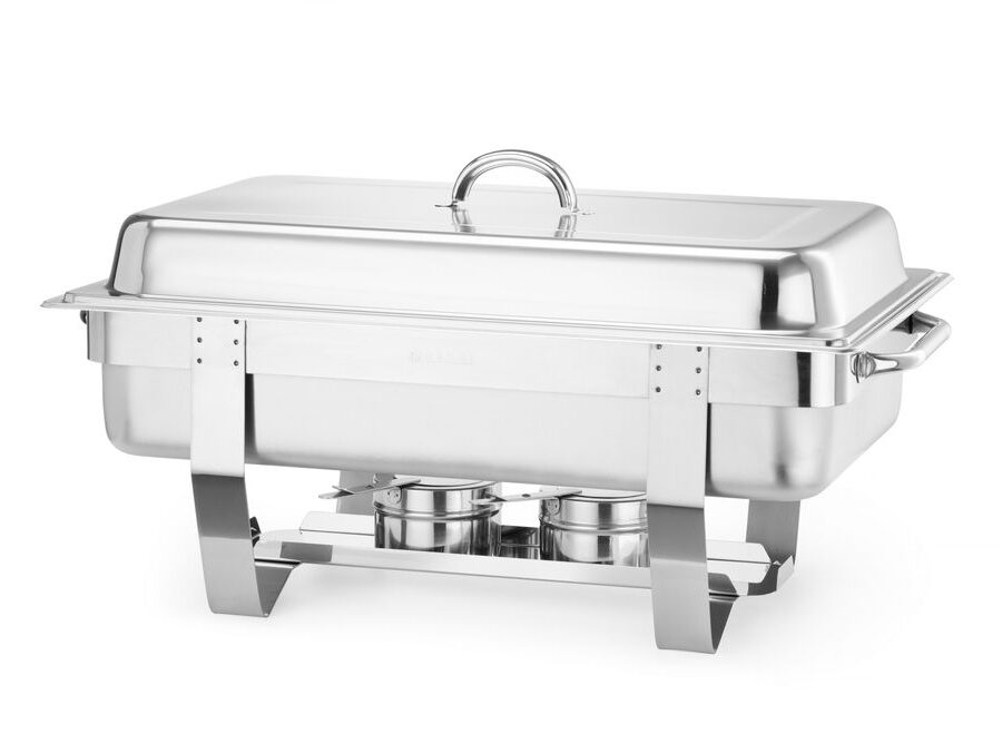 Verhoogd roestvast stalen rooster voor het warmhouden van sauzen en gereed product.