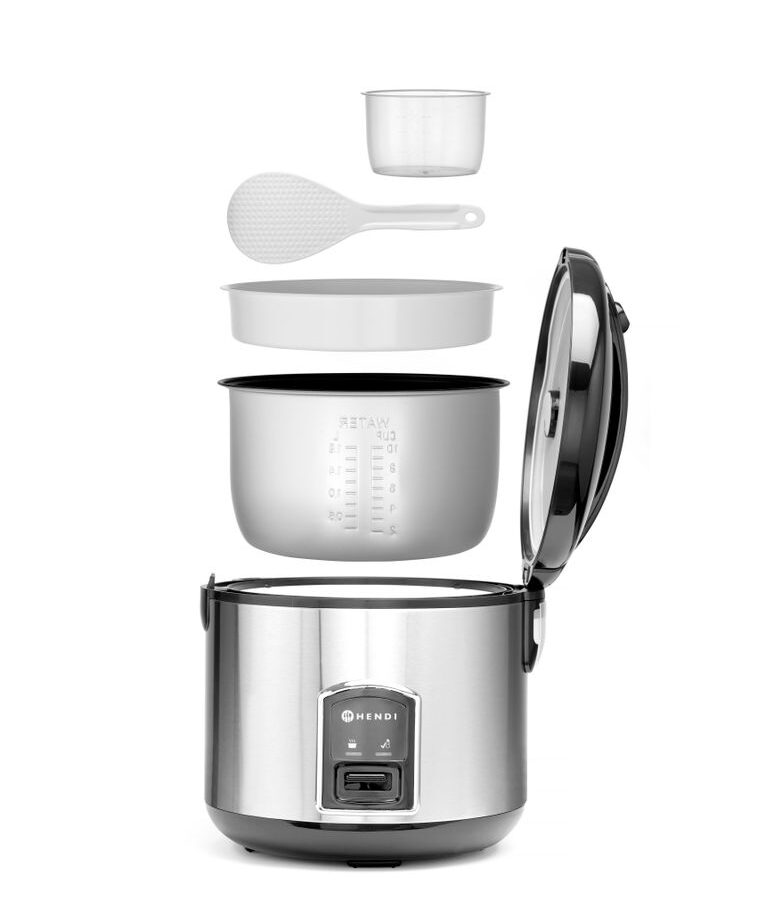 Bij de levering horen bovendien 2x opscheplepels, 1x stoominzet inclusief houder en 1x maatbeker.